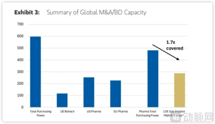 虽然Biotech们可以贡献一定的收入,但考虑到临床失败率和监管不确定性,仍存在显著缺口。MNC预计会投入4800亿美元的并购/BD资金,加上处于商业化阶段创新药企的1170亿美元,总购买力近6000亿美元,是专利悬崖缺口金额的1.7倍,为今后一段时间的大规模交易提供了充足的资金。